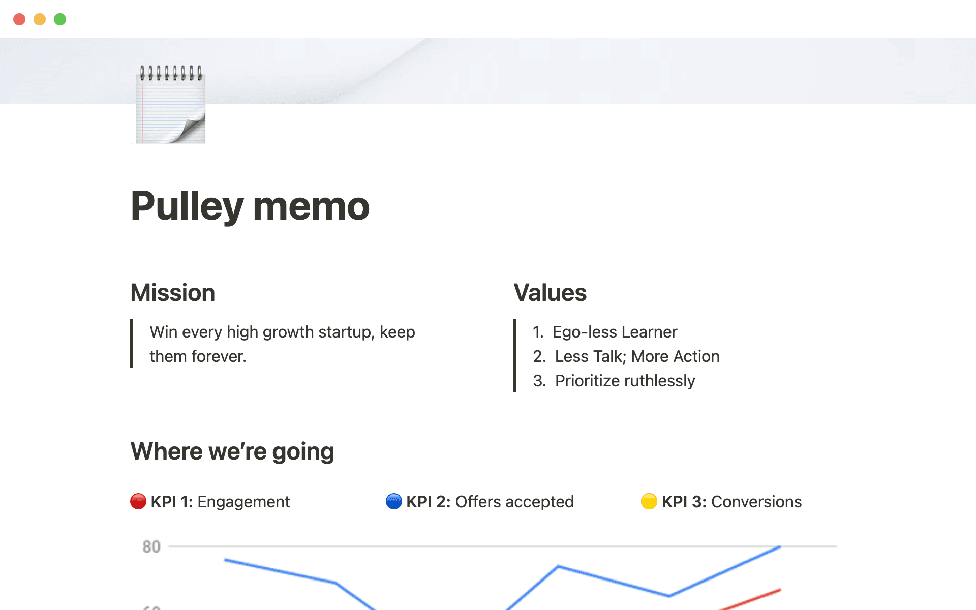 In order to juggle all her responsibilities as both a mom and CEO, a system to collaborate easily with her team was also a must. “When Pulley grew past three people, it became clear that Google Docs was a single player tool,” she says. Transitioning to Notion allowed the team to create a structured workspace with a hierarchy of information. “Anyone can find the projects and docs they need, as well as make changes to this source of truth as we evolve.”