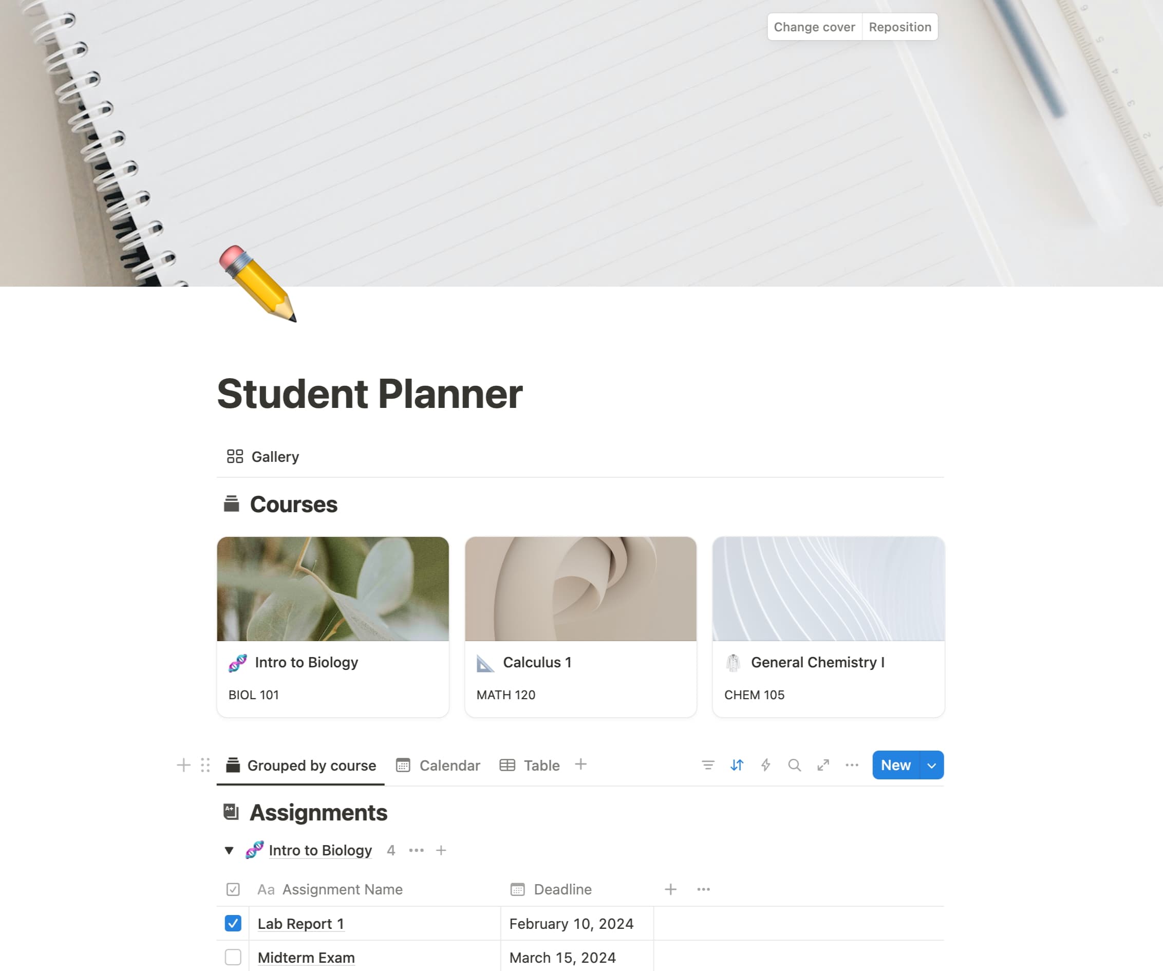 Build what you want: your study planner or even your fitness tracker. And personalize it with charts, tables, custom calendars, and even gallery views.